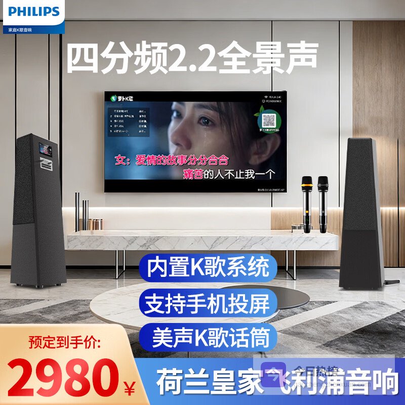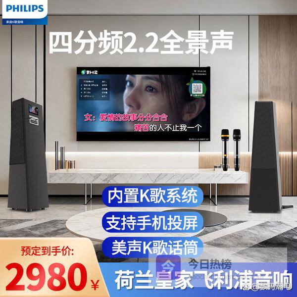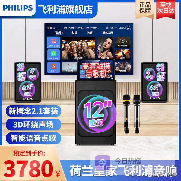 要说飞利浦KTV音响怎么选,首先你得想清楚你最看重什么。如果想要一步到位,省心省力,那那种家庭KTV一体机就挺适合你的,音响、点歌机、功放啥的都集成在一起了,不用自己操心搭配。而且现在的一体机功能也挺强大,什么语音点歌、扫码点歌都支持,老人小孩都能轻松上手。要是你对音质有更高的追求,那可以考虑那些带四分频技术或者全景声环绕的,这种音响能把声音处理得更细腻,更有层次感,让你在家也能享受到影院级别的听觉盛宴。 当然,价格也会稍微贵一些,就看你的预算啦。
