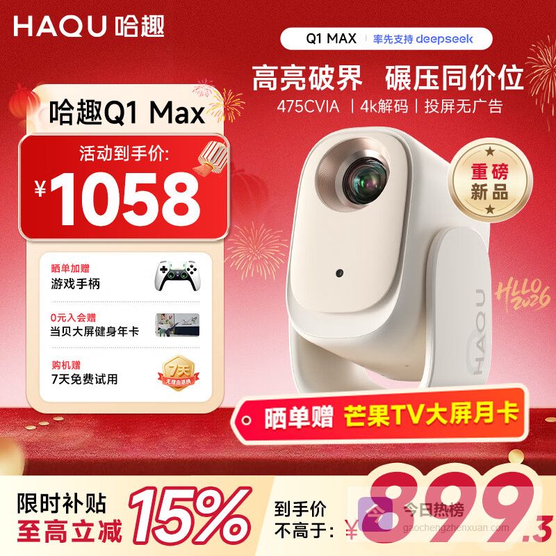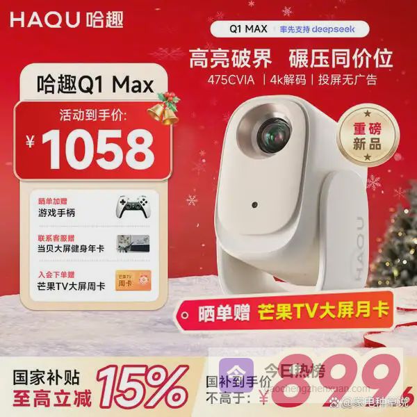2、哈趣Q1 Max这款投影机在画面表现上真是下了功夫!1080P高清分辨率搭配4K解码,画面清晰细腻,色彩也很舒服。AI臻彩画质增强技术,让人物肤色更自然,物体边缘也更锐利,观影体验直接提升一个档次。再加上475 CVIA亮度,白天观看也完全没问题。