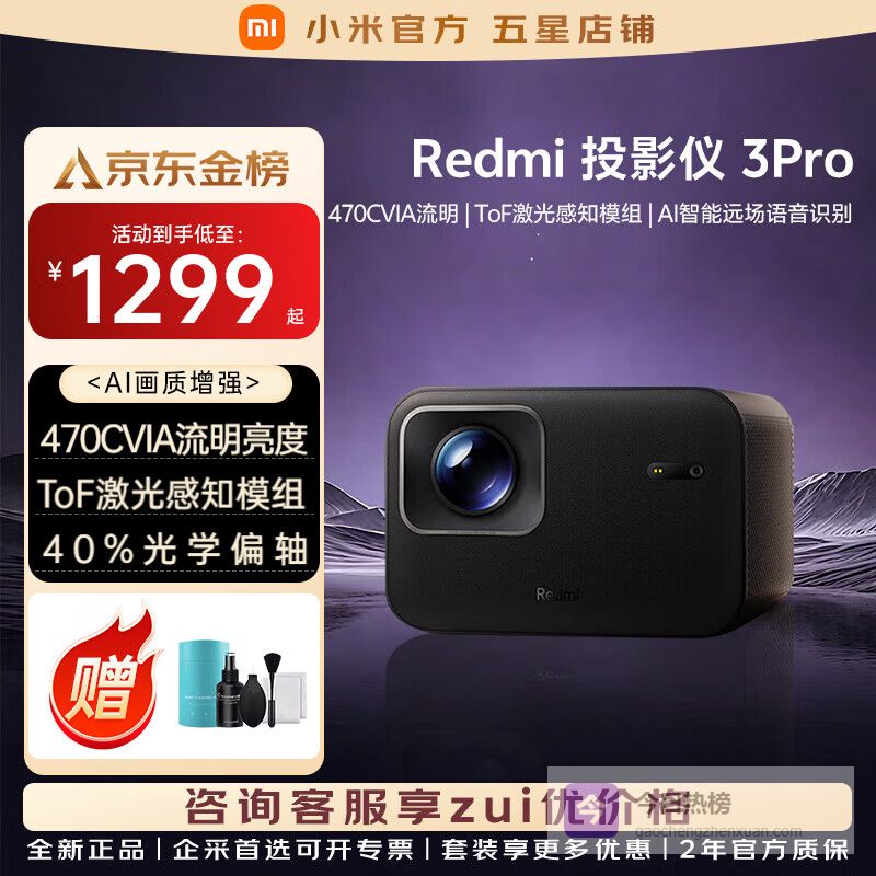 小米(MI)Redmi投影仪J3Pro家用家庭影院高清1080P投影仪 迷你便携轻便远场语音户外露营车载车顶小型投影机 Redmi投影仪3Pro【极速对焦 即刻超清】¥