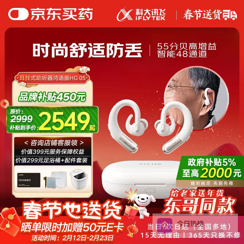 5️⃣ 科大讯飞【年货送礼东哥同款】耳挂式助听器老年人耳聋耳背专用隐形鸿语05