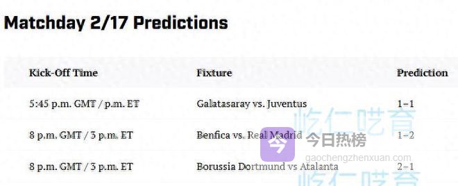 嘿,欧冠淘汰赛附加赛这周开打啦!2月18日凌晨两点和四点,四场焦点战就要上演——本菲卡对皇马、加拉塔萨雷碰尤文、多特蒙德战亚特兰大,还有摩纳哥打巴黎!这可不是随便踢踢,足球数据网站Sports Illustrated FC、Whoscored和SportsMole都出了预测,到底谁能占得先机?先跟你们唠唠这几场的看点和可能的结果~