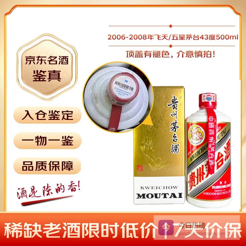 茅台 2006-2008年 飞天/五星随机发货 酱香型白酒 43度 500ml 单瓶装 陈年老酒 礼赠宴请收藏【名酒鉴真】¥