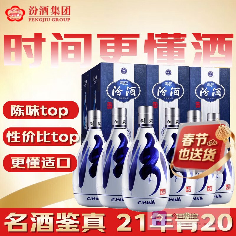 汾酒【金榜严选】青花20 2021年 清香型白酒 53度 500ml*6瓶 整箱装 陈年老酒 【名酒鉴真】新年礼物¥