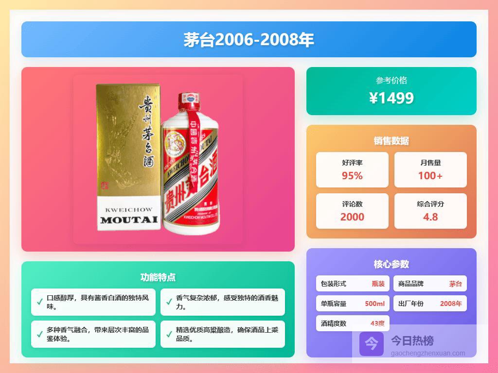 【浓香醇厚】酒精度在50.8%vol,倒是属于比较烈的类型,但浓香味道饱满、余韵悠长,喝完之后回味无穷。特别适合喜欢浓烈、香味丰富白酒的朋友,倒是还挺符合大部分人的口感需求。