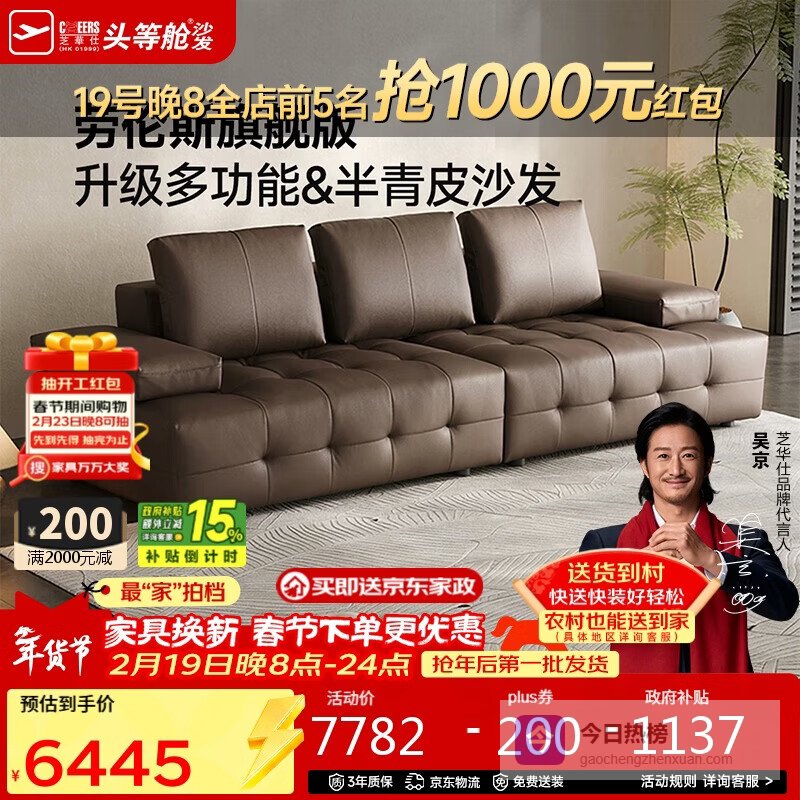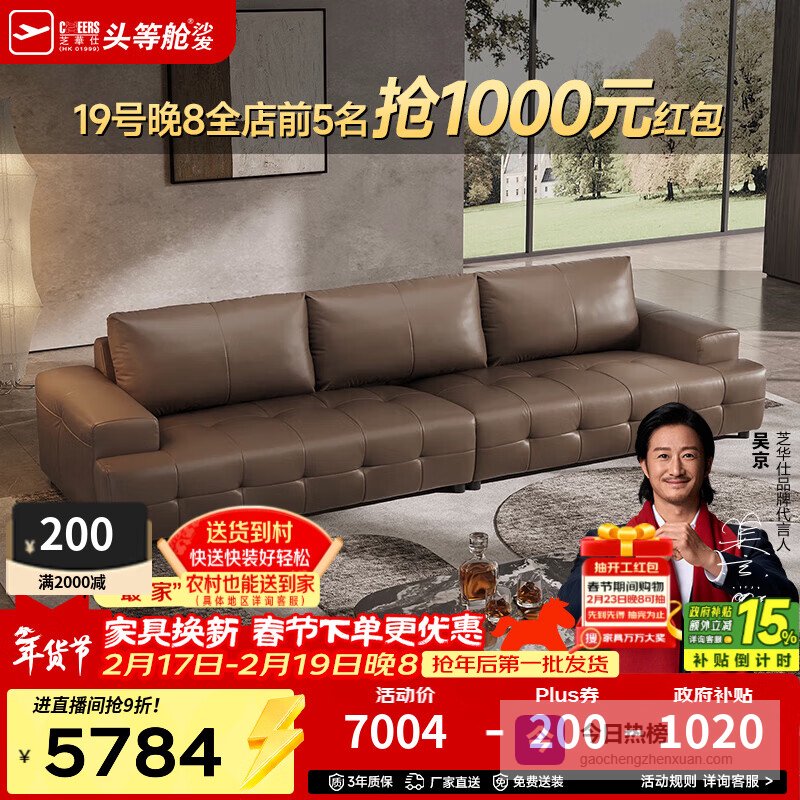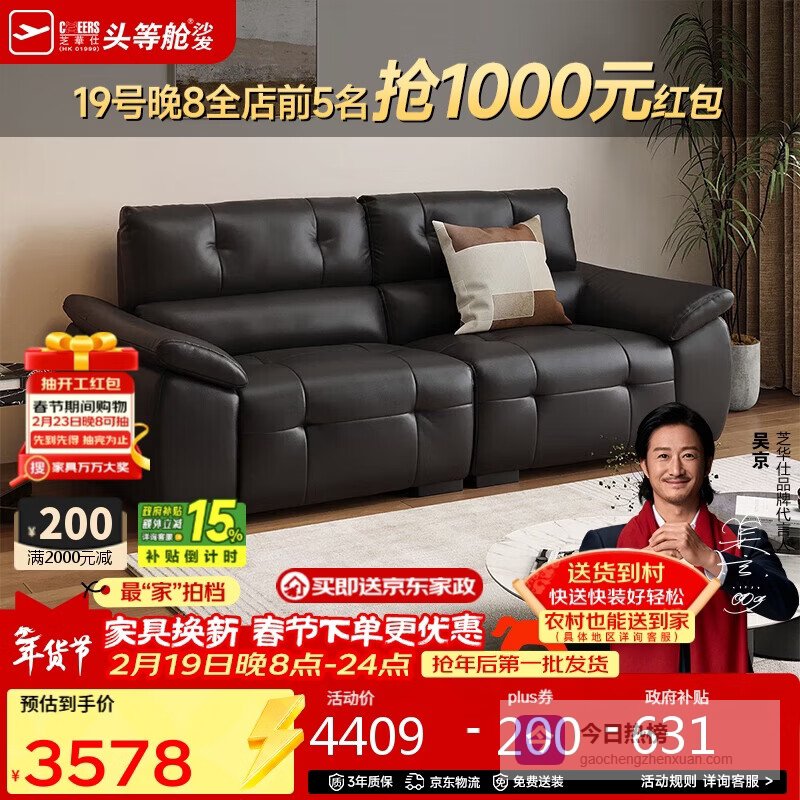 芝华仕(CHEERS)劳伦斯黑色真皮沙发客厅2025新款家用小户型政府补贴芝华士3139 【3.37米大四人位】可可棕 年后第一批发货(详询客服)¥