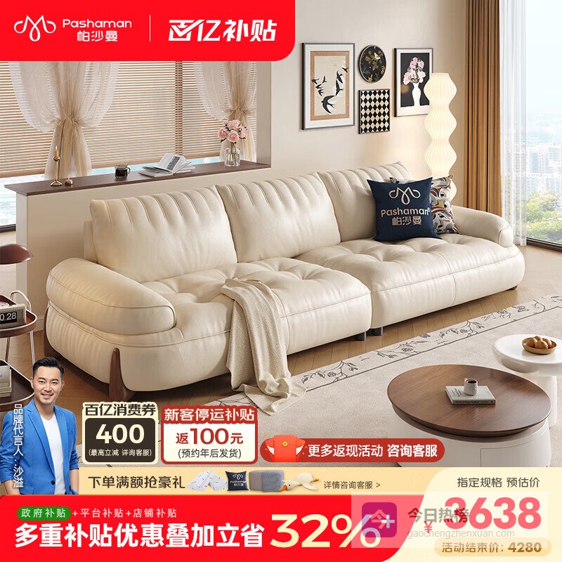 帕沙曼(pashaman)真皮沙发 客厅2026新款头层牛皮中古风意式云朵沙发3.4米2630ZP¥