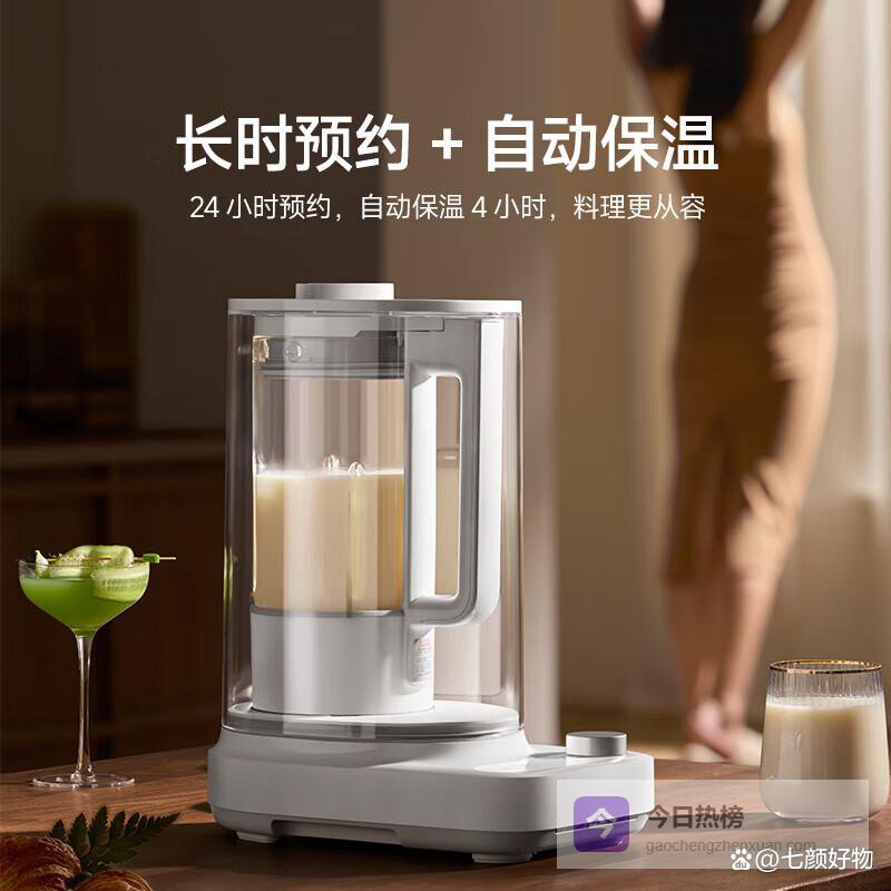 它具备多种烹饪功能,包括快速和浓豆浆、营养粥、玉米汁等,满足不同需求。内置智能程序可以根据个人口感调节熬煮曲线,还支持预约和保温,让你早晨醒来就能喝到温热的营养饮品。自清洗功能也非常贴心,清洗方便,省去繁琐步骤。