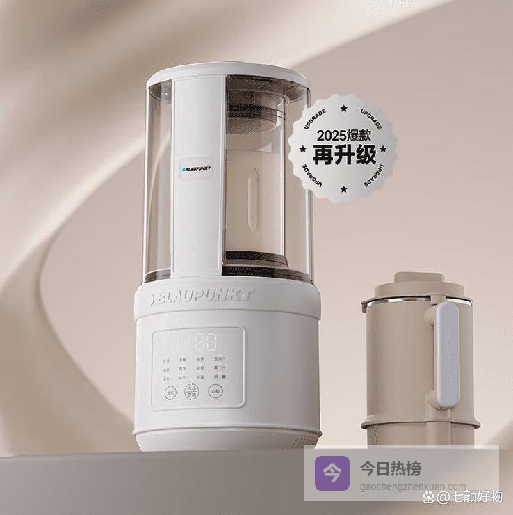 3、蓝宝2025新款破壁机这款蓝宝BP-FP02T破壁机,配备了X7智频变速电机,实现多段调节,能精准感知食材状态,自动梯度搅拌,充分激发大豆的天然香味。在高硼硅玻璃加热杯的保障下,制作热饮容量达1200ml,满足家人多样的需求。它还能制作豆浆、米糊、奶昔、浓汤等多种营养美味,操作简便,容易清洗。