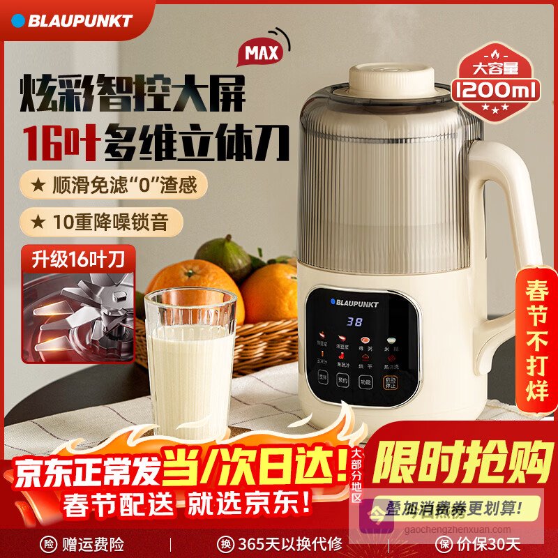 蓝宝(BLAUPUNKT)德国蓝宝破壁机家用豆浆机小型3-4人低噪音全自动多功能无渣免滤自清洗五谷杂粮辅食机新年礼物 【行业热销】16叶刀头+1.2L白色¥