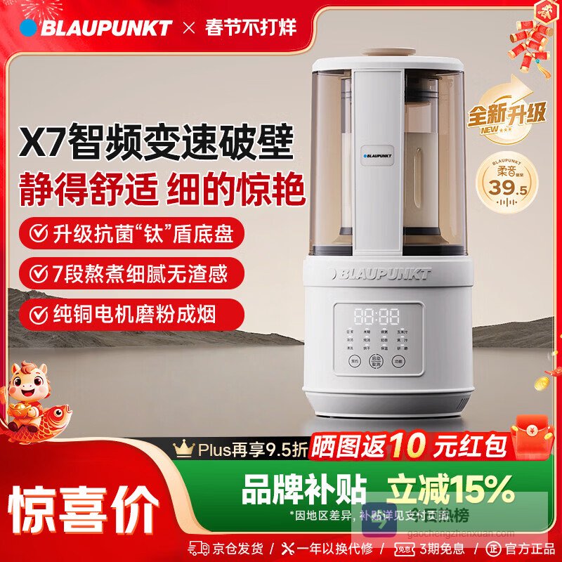 蓝宝(BLAUPUNKT)智频变速破壁机家用豆浆机全自动免煮25新款静低音破壁机米糊机磨粉机政府补贴02T 钛盾底盘¥