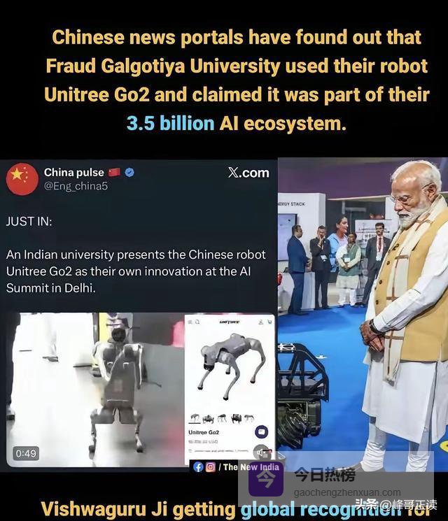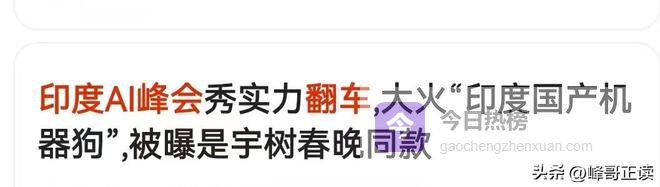 《环球时报》:印度AI峰会秀实力翻车,大火“印度国产机器狗”,被曝是宇树春晚同款