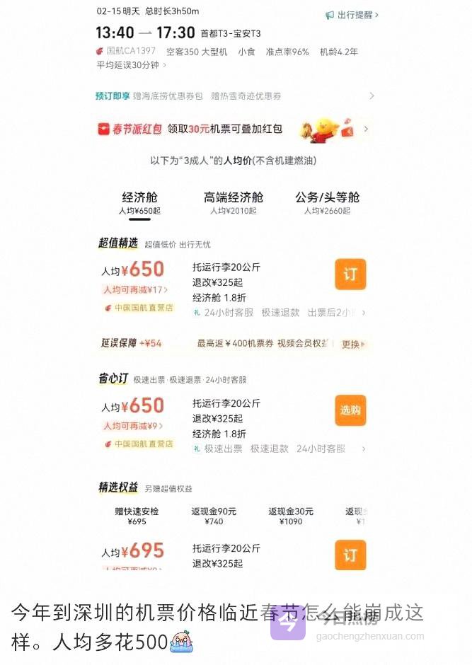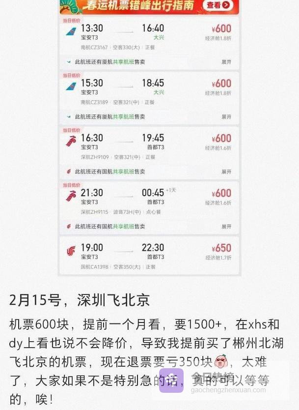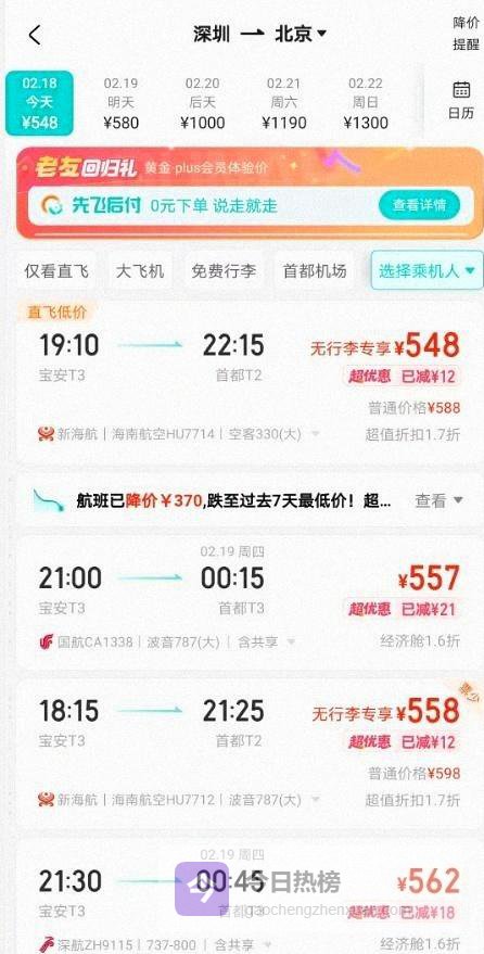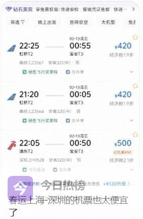 深圳到北京在初二最低只要548元,部分机票低至1.6折,深圳到上海623元,贴着甚至压过同线路动车的价