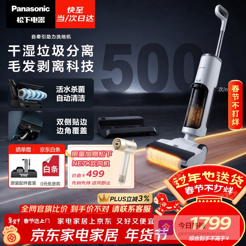 【京东自营】松下【清洁神器】洗地机吸拖洗一体自动清洗拖地机吸尘器家用毛发防缠绕分离活水杀菌持久续航M¥