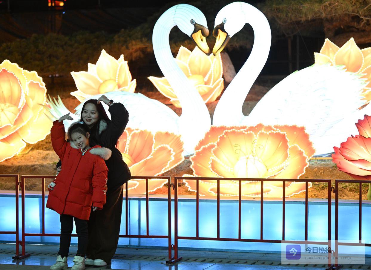 2月12日,游客在第九届陕州灯会现场赏灯拍照。新华社记者 李嘉南 摄