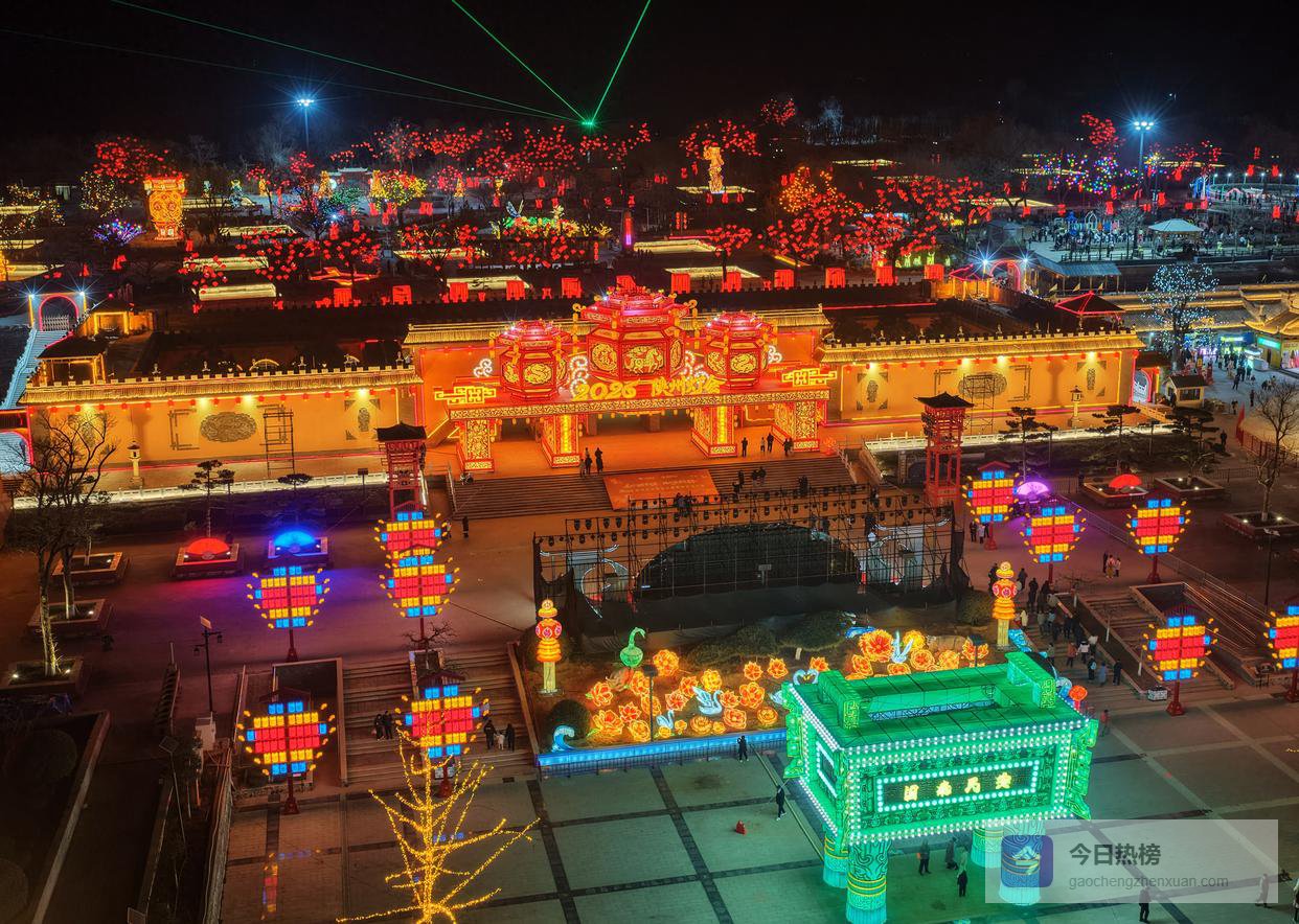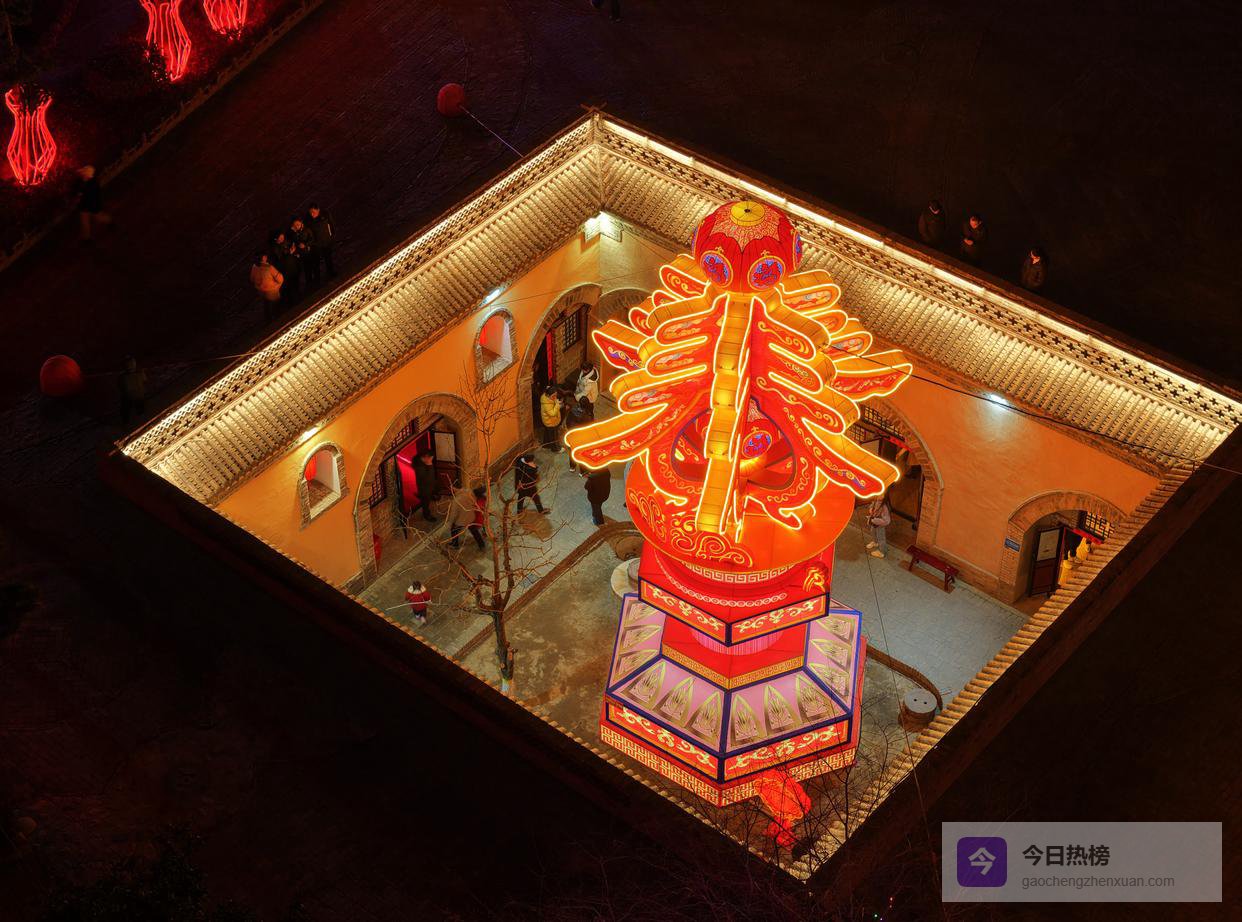 农历除夕前夜, 第九届陕州灯会在三门峡市陕州地坑院正式点亮。13组巨型灯饰同时绽放,传统彩灯技艺与激光投影、智能感应等现代光影手段交织,把整座地坑院变成一座“会讲故事”的灯火城堡。抬头是璀璨星河,低头是千年地坑, “花灯闪耀黄河岸,地坑院里非遗年”的主题口号,在这一刻被灯光写满整片夜空。