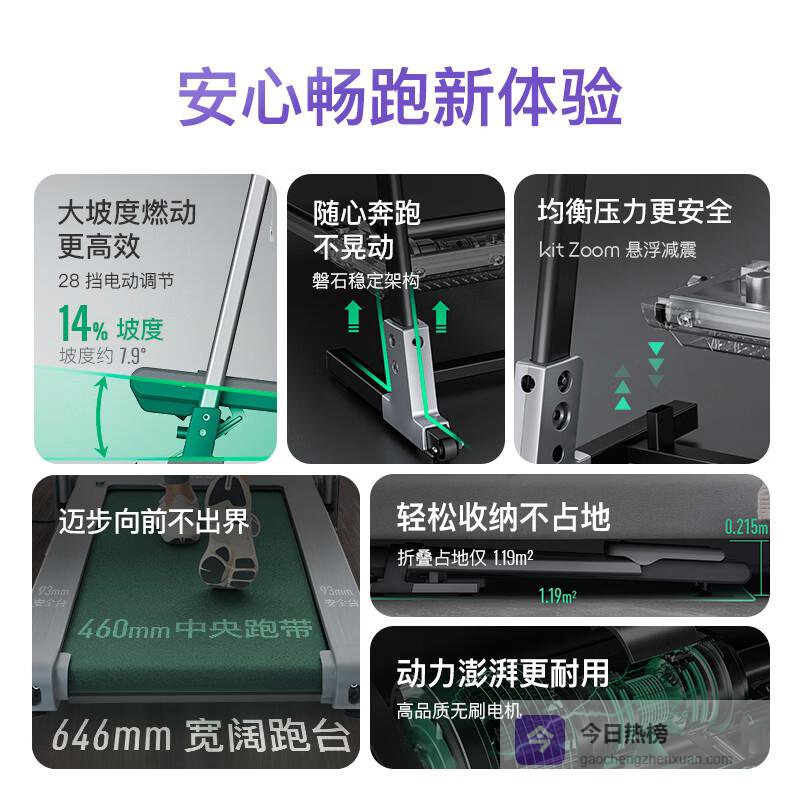 推荐理由:商用级动力系统、电动坡度调节、宽域跑台设计、高效减震系统