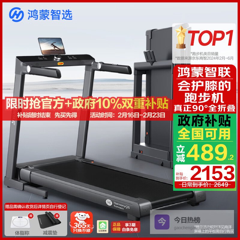 【京东自营】华为智选鸿蒙智选跑步机家用降噪90°全折叠智能减震走步机亿健精灵S8¥