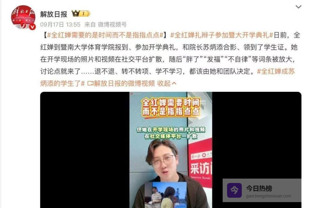 刚进入暨南大学读大一的跳水冠军全红婵,在新生舞台上表演后遭到了网友的批评,这情形有点像当年的郭晶晶,毕竟,没经历过流言蜚语,哪能算真正的世界冠军呢。