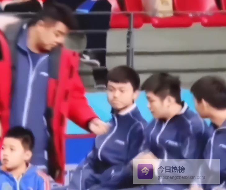 他年纪小小的,背着个小书包就跑去观赛了。那时主持人正介绍着世界冠军们入场呢,话刚说完,未来的世界冠军就闯进了镜头里。
