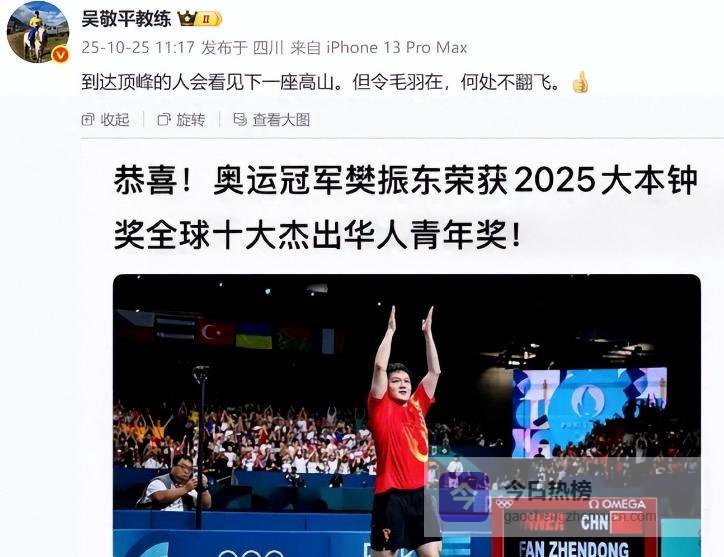 刚回国准备全运会才半个月,樊振东就大大方方地公布了个好消息,这下王皓教练之前说的那话算是应验了。