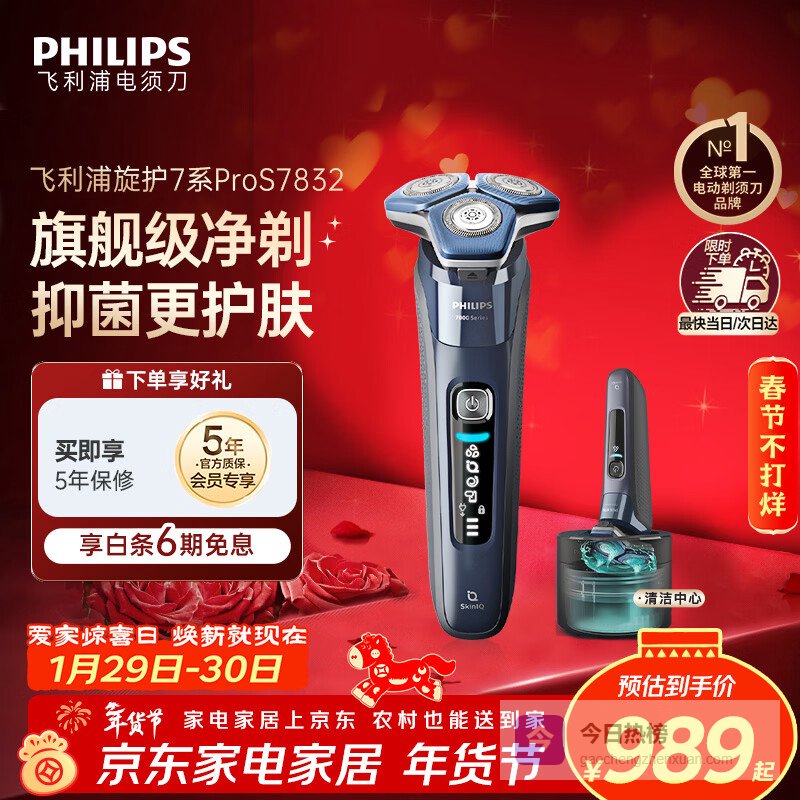 飞利浦(PHILIPS)电动剃须刀旋护7系Pro SkinIQ智能刮胡刀 年会奖品年货礼物 生日礼物送男生男友老公父亲¥