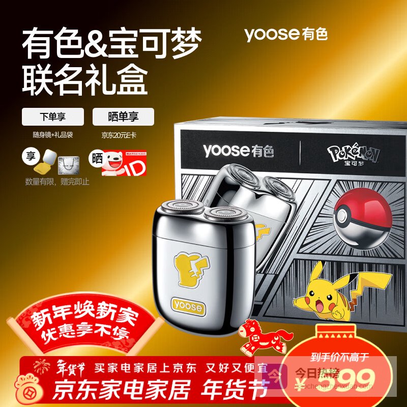 有色(yoose)宝可梦联名款剃须刀 潮流便携迷你合金刮胡刀 男士生日新年礼物送男友老公胡须刀 皮卡丘联名礼盒¥
