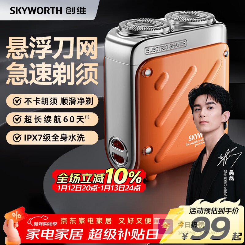 创维(Skyworth)【吴磊同款】行者剃须刀刮胡刀电动男士剃须刀迷你便携刮胡刀剃须干净送男友老公父亲新年生日礼物¥
