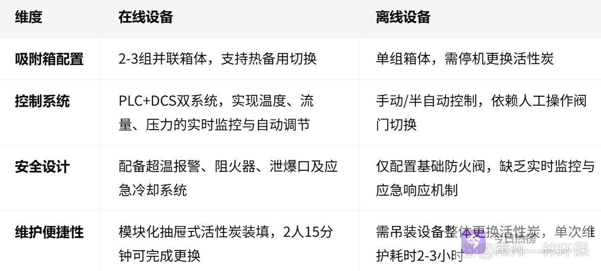 技术局限:离线设备无法实现能量自平衡,需持续消耗电能维持催化燃烧温度。某电子厂案例显示,其离线设备日均耗电量比在线设备高40%,且需配备专职操作人员完成活性炭更换。