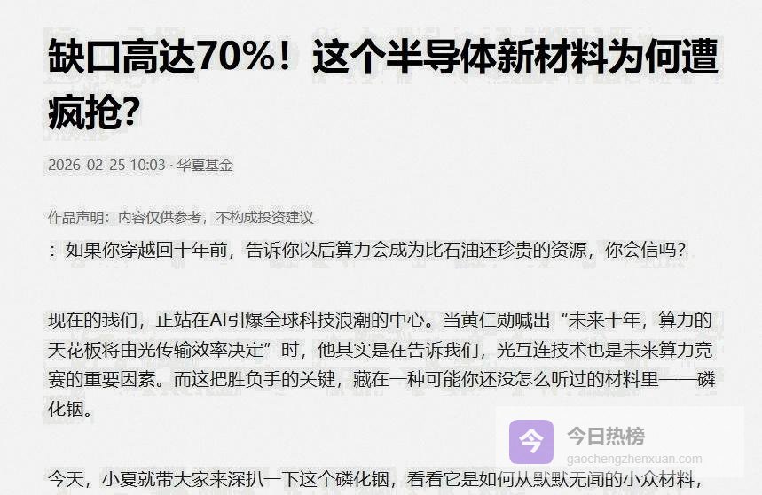 它在高频高速场景里,电子迁移速度远超硅,延迟低、速率快,是AI时代的光电硬通货
