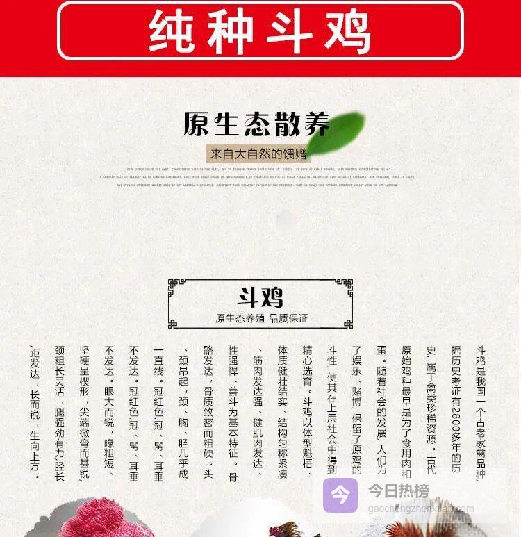 毛色只是第一印象,真正决定胜负的是血缘——也就是“窝份”。选种时,至少要追溯2—3代族谱,确认斗性顽强、越打越狠,且遗传稳定。只有纯度高的家系,才能一代代“复制”出打不垮的斗鸡。