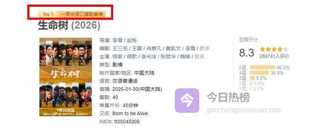 图:《生命树》夺下豆瓣一周华语口碑剧集之最