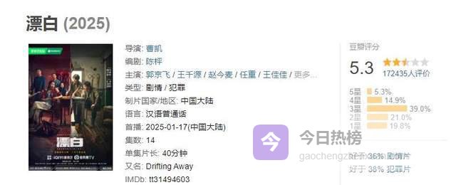 第二板斧,自然就是爱奇艺曾引以为傲的《迷雾剧场》了,然而,不知道什么原因,迷雾剧场在《隐秘的角落》、《沉默的真相》、《追凶十三载》之后,几乎没有一部豆瓣评分能达到8.0的口碑佳作了,让不少剧迷感到失望,就连去年爆火出圈的《漂白》,豆瓣评分仅5.3分。
