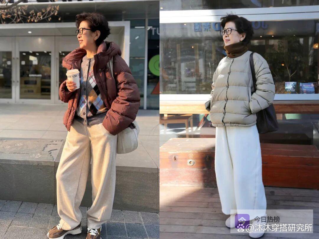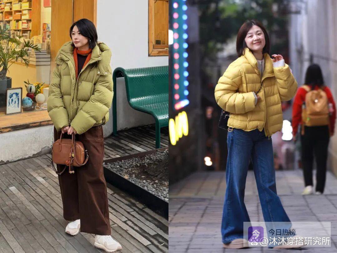 三、羽绒服配阔腿裤