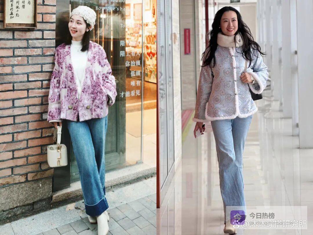 二、新中式外套配牛仔裤