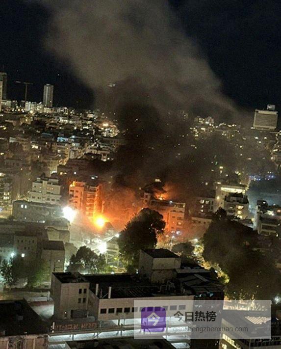 特拉维夫的以军总参谋部区域夜空有火光,现场出现大火