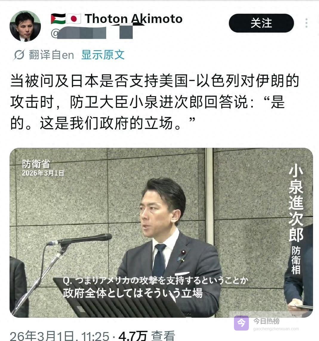 于是,你就能理解日本政府那令人困惑的“变脸”了。冲突刚爆发时,作为美国在东亚最紧密的盟友,日本在政治上几乎没有任何回旋余地,必须第一时间站队表态。小泉进次郎那句“支持美国”,是讲给华盛顿听的“盟友义务”。但这话说出去还不到一天,冰冷的现实就拍在了脸上:你支持的这场行动,直接导致你的能源生命线被切断了。