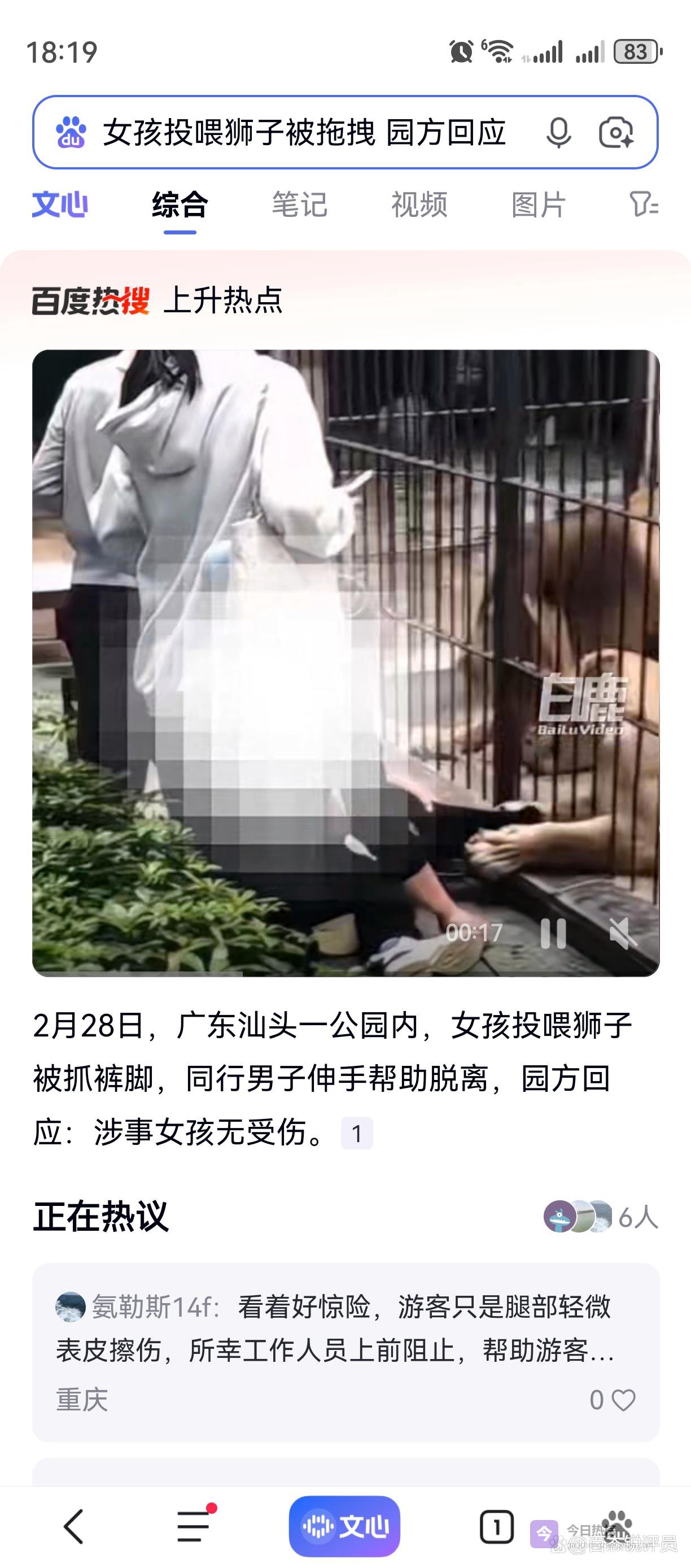 广东汕头:女童投喂狮子被拖拽 园方发布处置通报