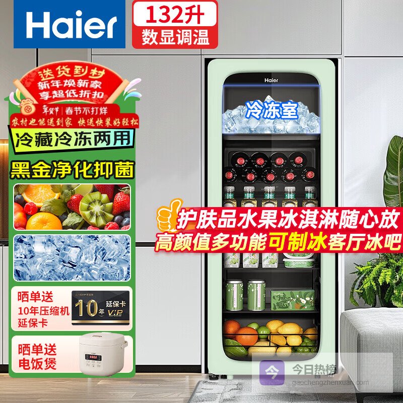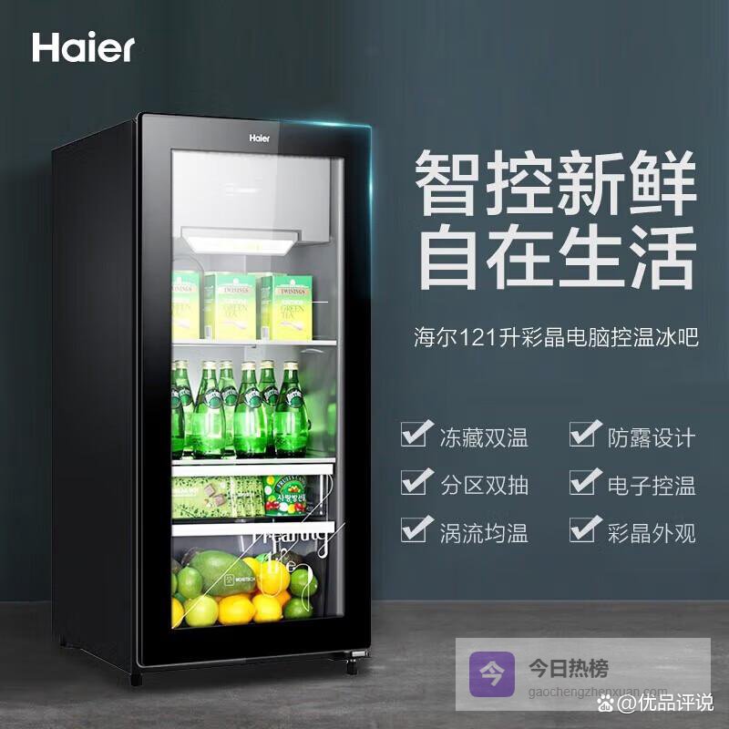 这款海尔冰吧,冷藏冷冻双区都有,而且温度都能单独调节,想怎么存就怎么存,夏天冰镇饮料,冬天存点冰淇淋,都安排得明明白白。