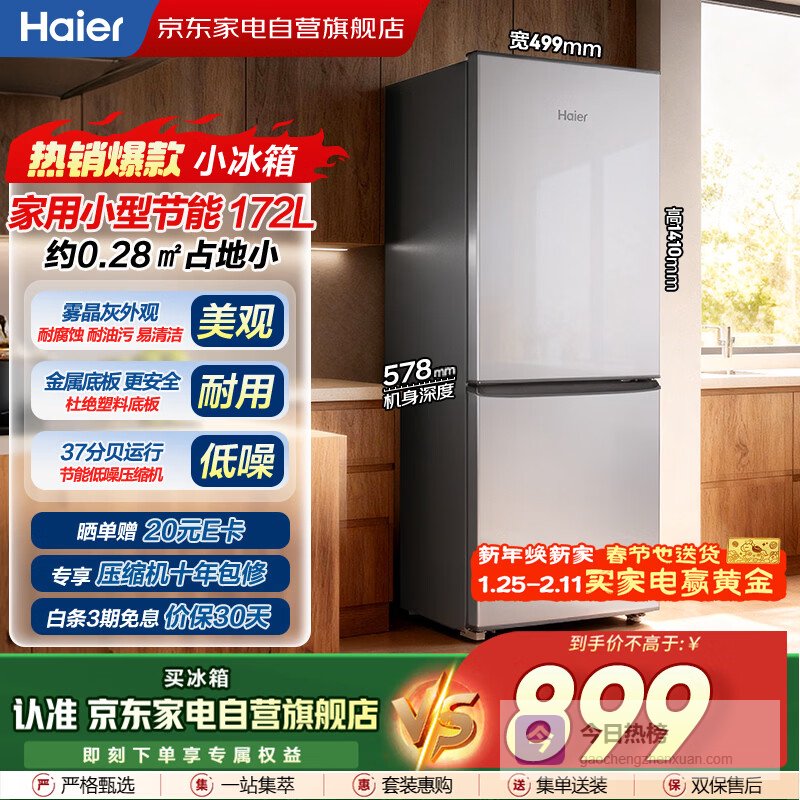 第2款:海尔BCD-172LHC2E0GH① 小户型优选:这款冰箱占地面积确实不大,差不多0.28㎡的样子,对于租房党或者小户型家庭来说还不错,省空间。关键是容量有172升,两个人用是完全够的。