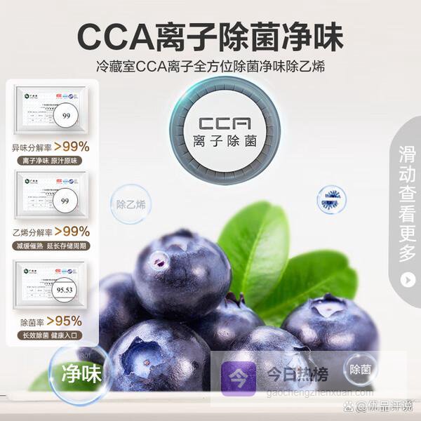 ② 离子净味除菌:冰箱里最怕的就是有异味,这个冰箱带了CCA离子净味技术,能有效去除异味,除菌率还挺高的,能达到95%以上。这样放进去的食材就不容易串味,吃起来也更放心点。