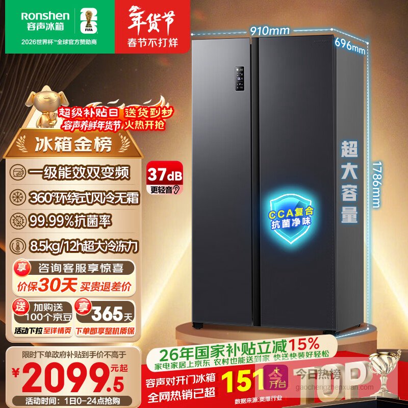 第3款:容声BCD-609WD11HP① 609升大容量:这个冰箱的总容积有609升,空间是真的大,冷藏室和冷冻室都能放好多东西,大家庭用起来也完全够用,过年过节囤年货啥的,根本不用愁没地方放。
