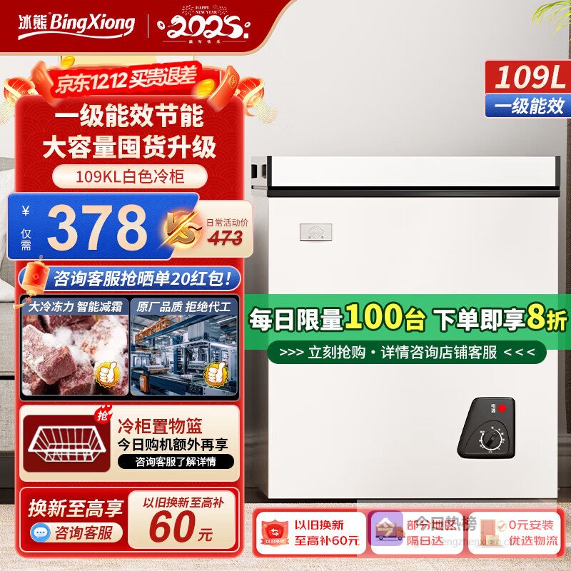 冰熊冰柜家用小型冰柜73L一级节能低噪小冷柜以旧换新冷冻冷藏柜食品保鲜小冰箱 109L 象牙白【减霜 单门】¥