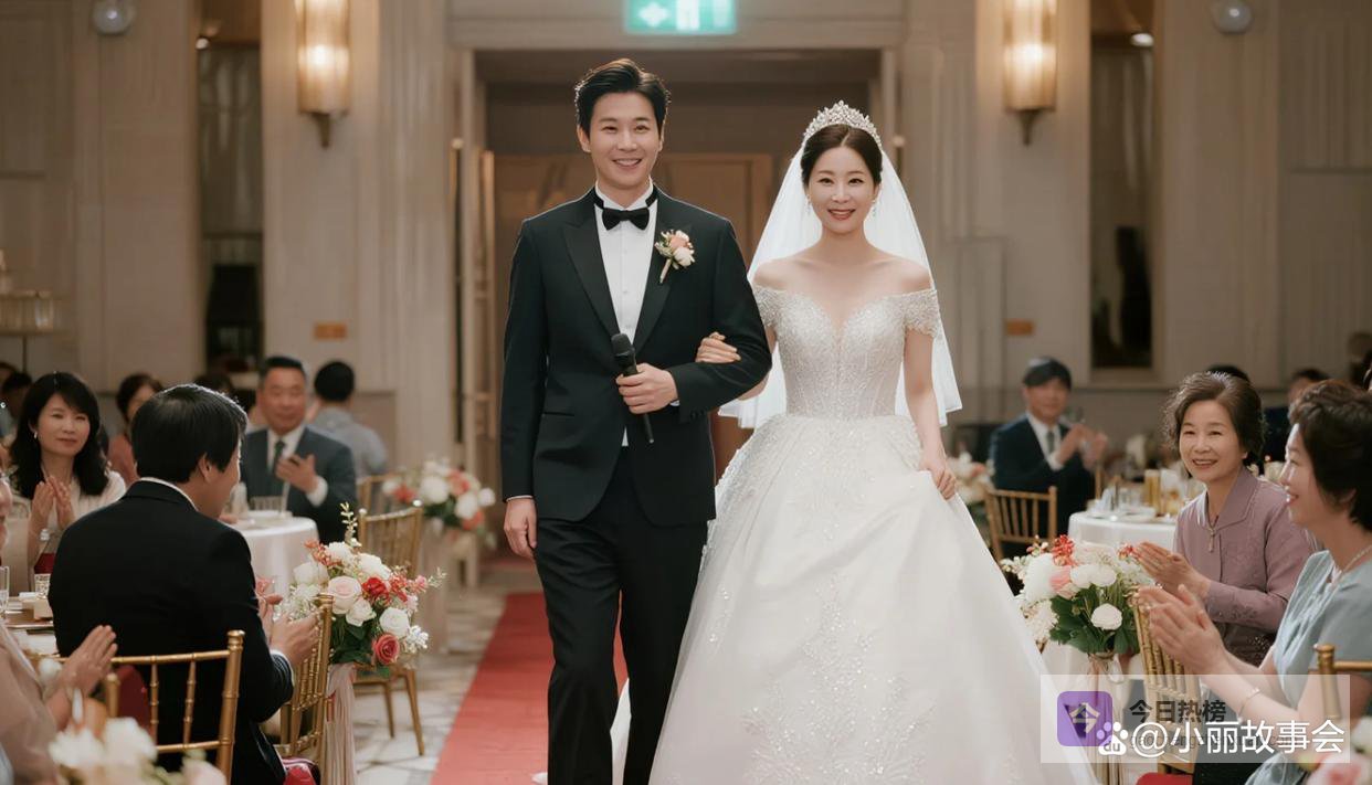 酒店仪式按部就班。司仪是沈家请的,嘴巴很能说,把场子炒得热闹。交换戒指,鞠躬,开香槟,切蛋糕。我穿着租来的婚纱,裙摆很大,走路要小心。沈文舟一直牵着我的手,手心有汗。敬酒环节最累,一桌一桌走,笑,说谢谢,喝酒。沈家亲戚多,很多我叫不上称呼,只能跟着沈文舟喊。他们打量我,目光像扫描仪,从上到下。有人小声议论,声音飘进我耳朵。