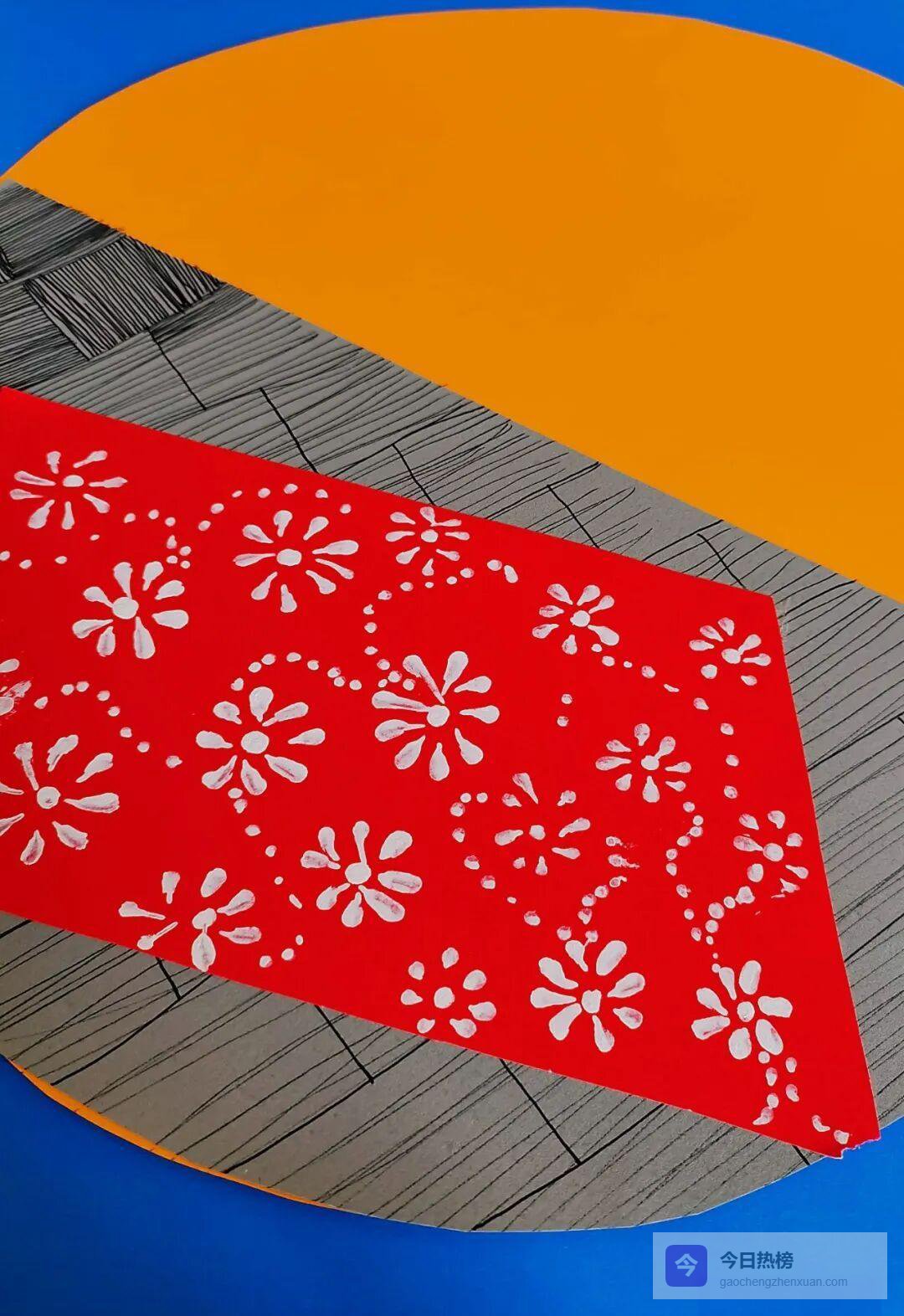 ④ 用瓦楞纸卷出树枝,粘上腊梅干花;若愿意,也可捡拾自然枯枝直接拼贴——一真一假,画面立刻有了呼吸感。
