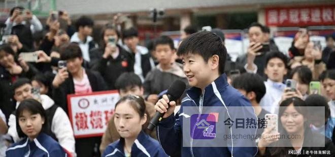 国乒今天的活动主要是进校园网,男队和女队分开。孙颖莎她们来到重庆鱼洞中学,受到了师生的热烈欢迎,成了大型追星现场。