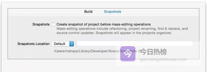 定时创建:前往Xcode > Preferences > Behaviors,选中“Create snapshot”后,可按编译成功、保存等动作自动快照。