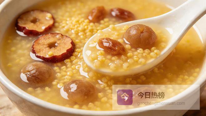 第二款是山楂桂圆小米粥,食材有山楂干8g、桂圆5颗、小米50g、红枣3颗。山楂能活血化瘀、消食化积,帮助改善血液黏稠,减少血管内垃圾堆积;桂圆补气养血、养心安神,缓解因气血不足导致的心悸、头晕;小米健脾和胃,为气血生成提供基础,红枣则能辅助养血,让气血更充盈。做法:小米淘洗干净,提前浸泡30分钟,山楂干、红枣洗净,与小米一同放入锅中,加入适量清水,大火煮沸后转小火慢熬20分钟,最后放入桂圆,再熬10分钟,至粥变得黏稠即可。每天早餐食用1碗,温和滋养,既能调理血管,又能健脾养胃,适合长期食用。