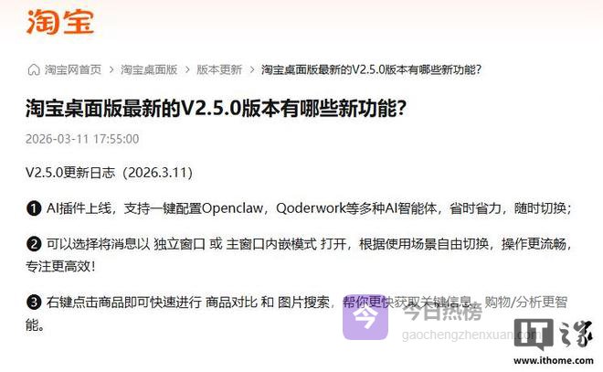 IT之家 3 月 13 日消息,淘宝桌面客户端 3 月 11 日更新到了最新的 2.5 版本,首次引入对 MCP 协议的 AI 工具支持,允许用户在本地启用 AI 智能体来自动化执行购物操作。