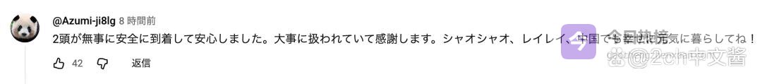 看到两只大熊猫都安全抵达我就放心了。感谢它们得到了很好的照顾。晓晓和蕾蕾,祝你们在中国幸福健康地生活!