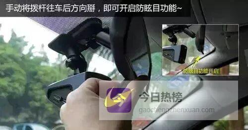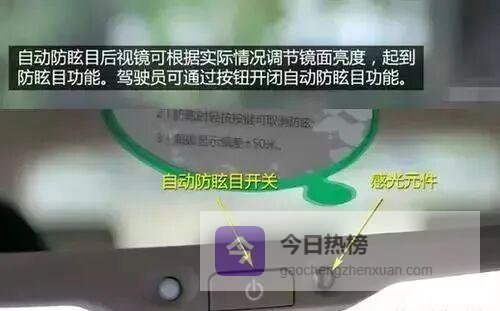 除了手动防眩目的后视镜,现在大部分车辆都安装了自动防眩目后视镜。自动防眩目后视镜下面没有小黑钮,取而代之的是一个电子开关。